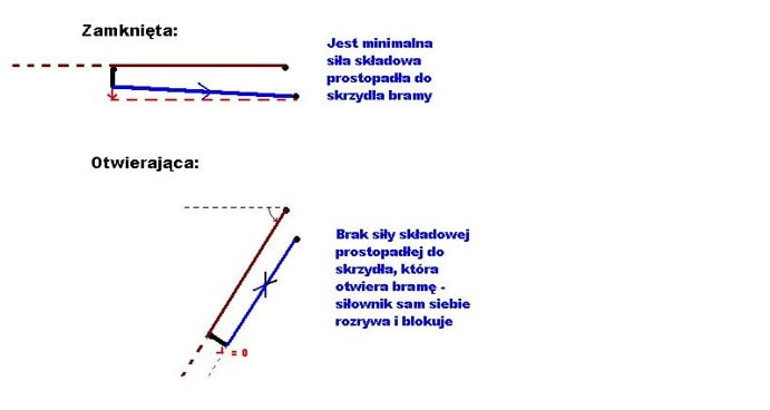 So, you need to make holders for the actuator: one on the door, and the other on the frame or wall at the hinges. Mount the actuator on the holders, remembering the principle shown in the figure below: the actuator MUST NOT be parallel to the flat door in any position, it must always be at an angle to it.